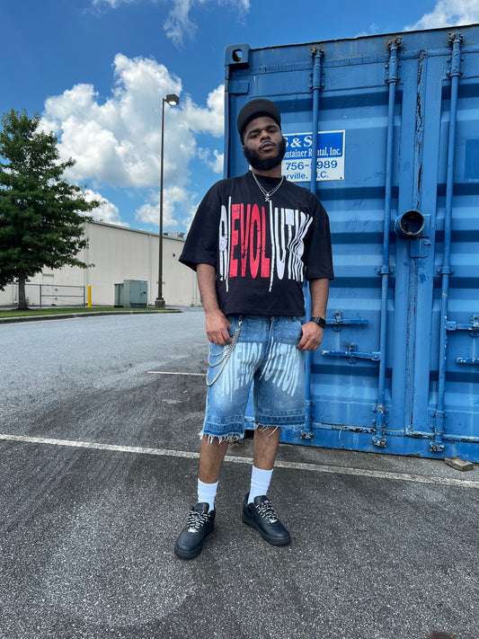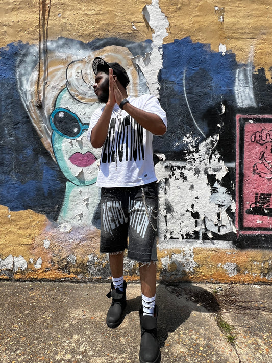 "Chrome Faces" Double Knee Jorts