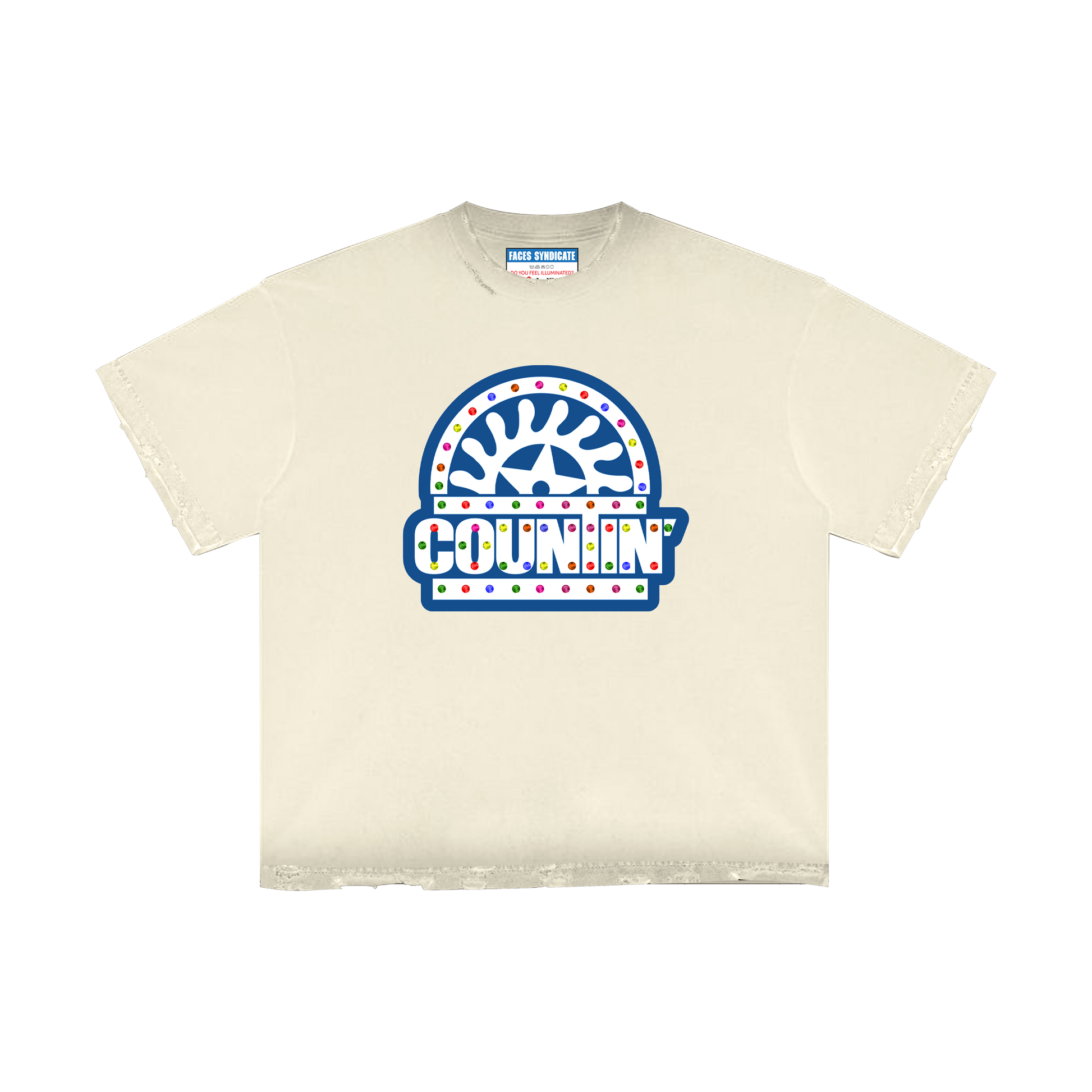 The "Illumination" tee features rhinestones throughout the design. With distressing on the sleeves, neck and bottom of shirt, we created a piece that embodies what it means to rise to the occasion regardless of circumstances. Limited stock available. Will not restock.